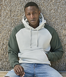 Doubled dyed.Double pre-shrunk.Brushed back fleece.Relaxed fit.Contrast shoulders and raglan sleeves.Two panel layer hood with self colour drawcord.Half moon back yoke.Front pouch pocket.Ribbed cuffs and hem with elastane.Tag free.60°C wash.
